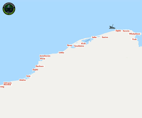 Wrak stalowej jednostki przełamanej na pół, położony między Dębkami a Karwią.